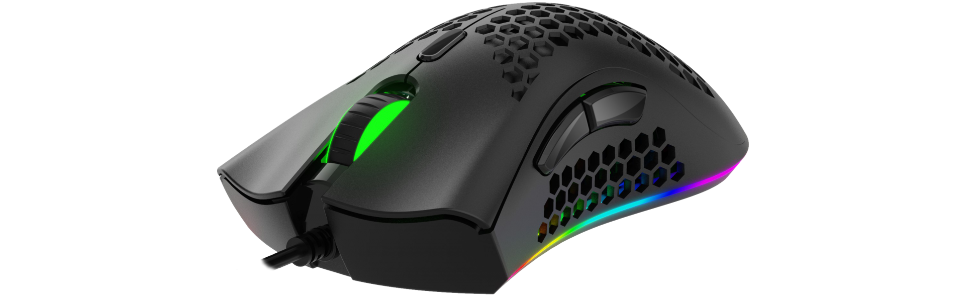 LED CHROMA LIGHT по контуру мыши работает в 10 различных режимах. Переключение режимов осуществляется кнопкой на дне мыши. Контурную подсветку можно также полностью отключить. Колесико и логотип оснащены однотонной подсветкой, которая меняется и настраивается в зависимости от уровней разрешения сенсора.